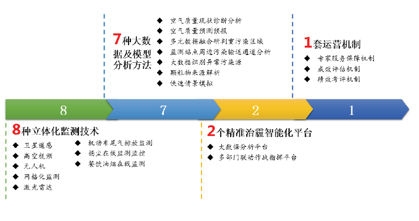 On the basis of three-dimensional monitoring and big data analysis, based on "8721" project, Mapuni has established a set of business process at the core of “three-dimensional monitoring, precision evaluation, target control and scientific evaluation” for the prevention and control of air pollution, and has built the work model of precise prevention and control, intelligent control and scientific evaluation for air pollution to provide technical support and management means for the precise treatment of urban haze.